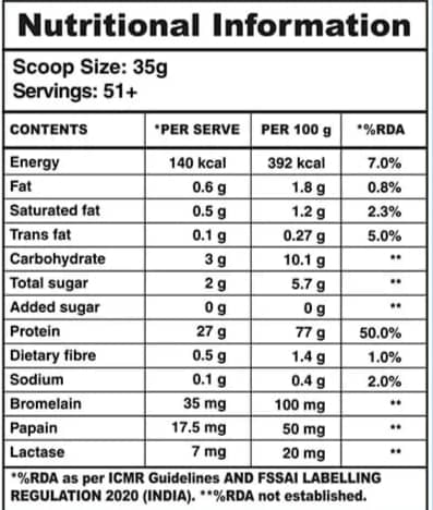 | Serving Size 1 Scoop | 35 g |