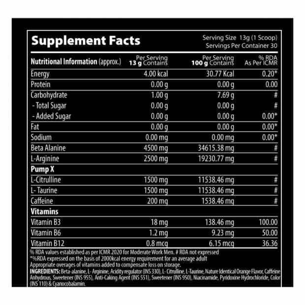 Mix 1 scoop (≈13g) with 200–250ml of cold water and consume 20–30 minutes before workout.